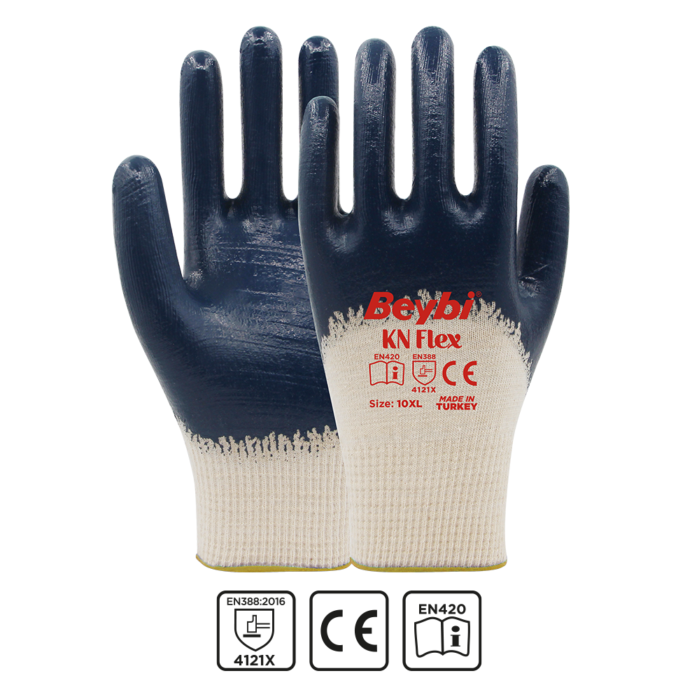 Örgü bilekli pamuk nitril iş eldivenidir.